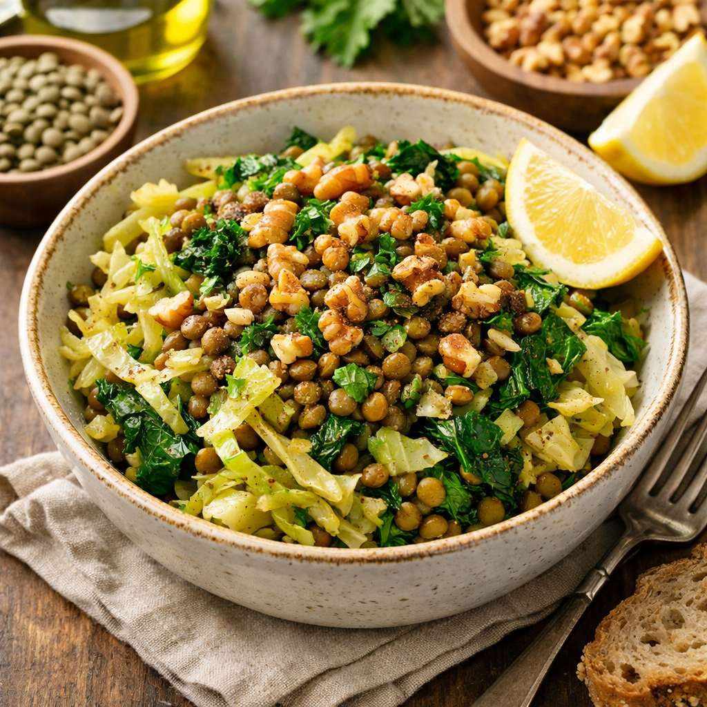 Cabbage, Lentil, and Walnut Power Bowl