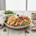This Golden Quinoa & Roasted Veggie Tahini Bowl is a masterclass in neuroprotective eating, designed to fuel your brain with a symphony of anti-inflammatory fats and complex carbohydrates. Grounded in the principles of the MIND diet, this bowl centers on fiber-rich quinoa, which serves as a low-glycemic "pseudo-grain" to provide steady, glucose-stabilizing energy that prevents the blood sugar spikes often responsible for "brain fog." The foundation of roasted broccoli and sweet potatoes delivers a powerful dose of Vitamin C, Vitamin A, and fiber, crucial nutrients for supporting the gut-brain axis and reducing systemic inflammation. To further boost cognitive support, the dish features protein-packed chickpeas for essential B-vitamins and a creamy lemon-garlic tahini dressing. Tahini is a good source of zinc and magnesium, minerals critical for mood regulation and protecting the brain from oxidative stress, while the inclusion of Extra Virgin Olive Oil provides the monounsaturated fats to keep brain cell membranes healthier.